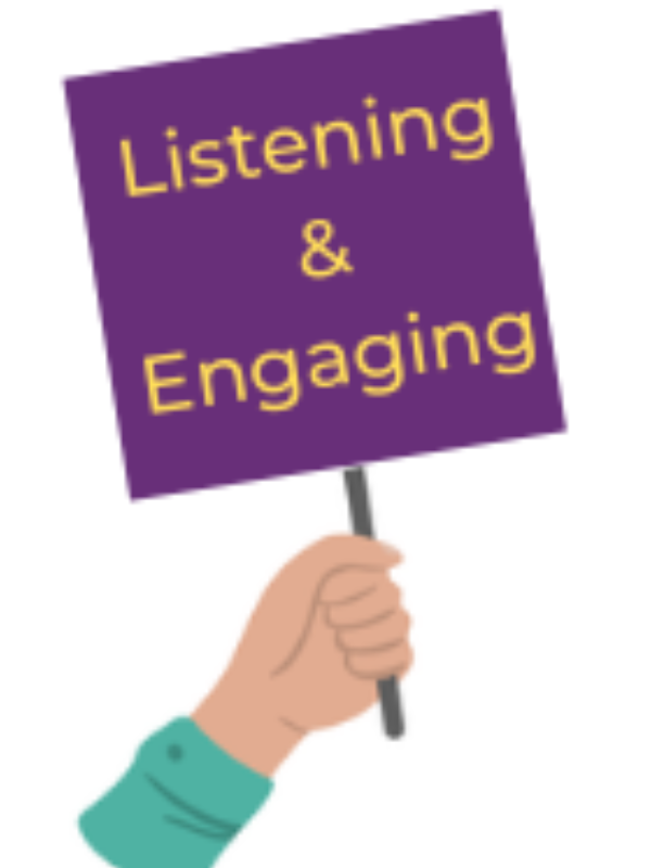 We create a culture of actively listening to individuals’ needs and choices, ensuring people feel listened to and safe. We adapt our communication style to the individual and make time to listen to learners and colleagues. We respect different points of view, know how to compromise and are open to new ideas.
