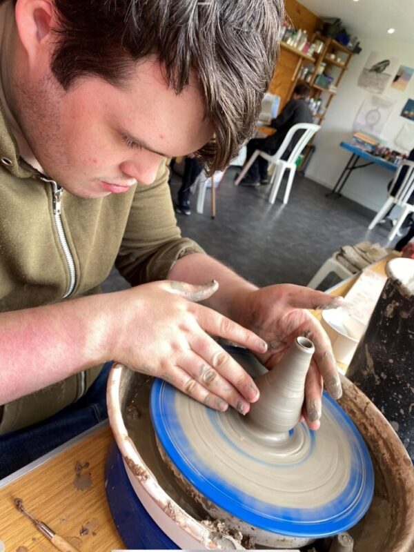 Clay work – many people who may struggle with traditional arts-based work often enjoy the process of working with clay. Our students can learn about the whole process of creating products from design through production, painting, and finishing and selling. Students can use our potter’s wheel or create items by hand. We also have a kiln which can be used to fire and glaze their work.